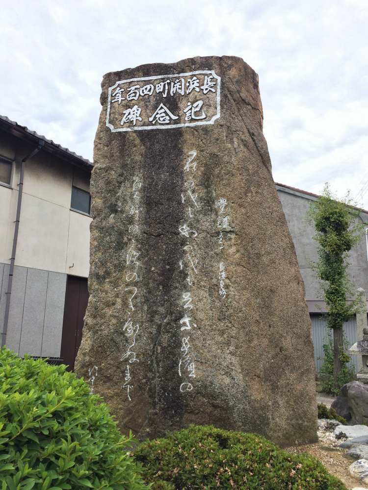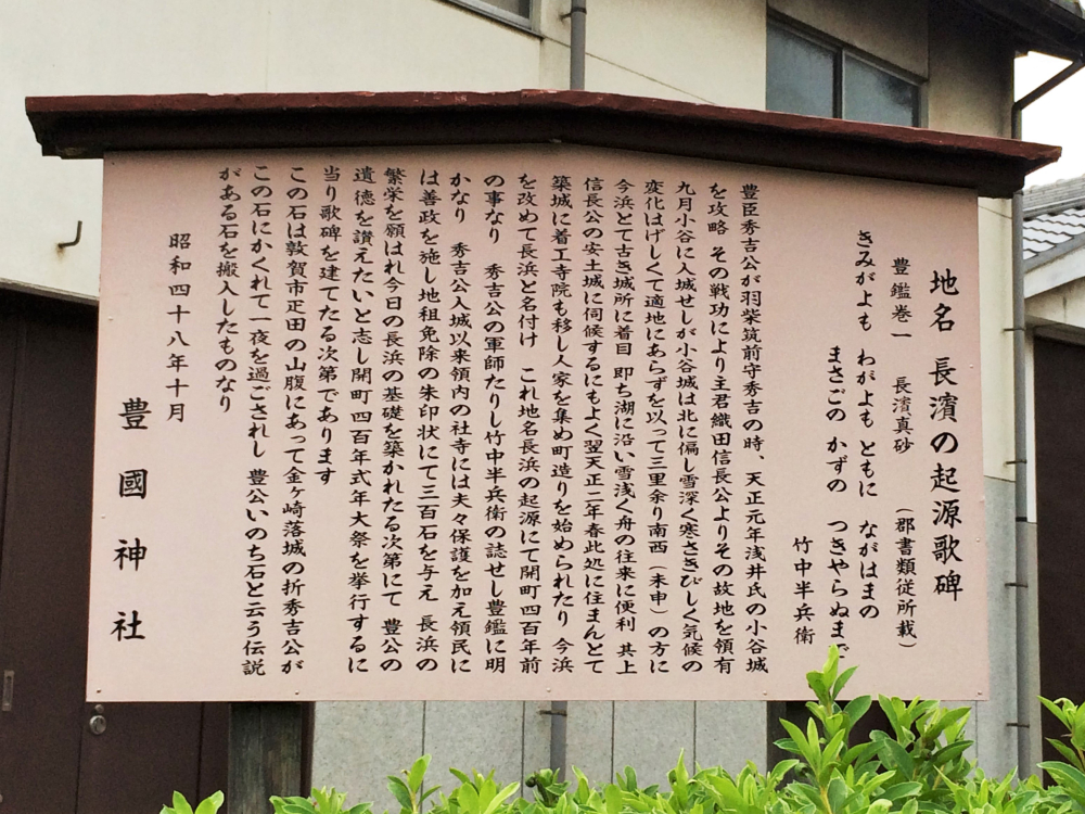 長浜の豊国神社の近くには,長浜開町四百年記念碑があり,その石碑には『豊鑑』に記されている歌が刻まれています.